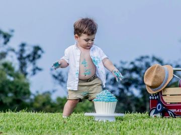 Jumbo Cupcake with an edible chocolate cupcake "liner". Perfect for toddler/kids birthday- this cake is as tasty as it is fun to smash!