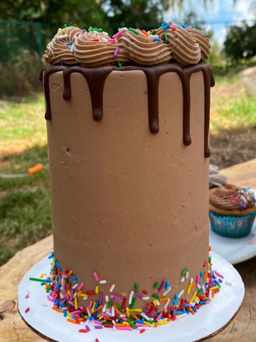 An up to 4 layered cake, in the flavor and frosting of your choice. Serves 4-12.