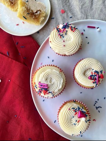 Batch (12) of cupcakes baked to perfection in the flavor of your choosing. Most popular flavors include but are not limited to: Funfetti, Strawberry Milkshake, Cookie Butter, Lemon Raspberry, Nutella, Peanut Butter Cup, Cookie Dough Cupcakes (+$2). Pictured above are our Salted Caramel Cupcakes.