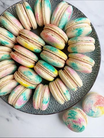 One flavor per dozen. Macarons are available in a variety of colors and flavors. Popular flavors include/not limited to Strawberry Milkshake, Cookie Butter, Birthday Cake, Lemon Raspberry, Passion Fruit, Dulce de Leche, Bananas Foster, Blueberry Lemon, Peanut Butter Cup, Nutella, Oreo, Peach Cobbler, S'mores, Coffee, Key Lime Pie, Mango, Watermelon, Fruity Pebbles, Lucky Charms, Earl Grey Lavender, Baklava, Guava Pastelito, Coconut, Mint Chocolate Chip, Butterscotch.